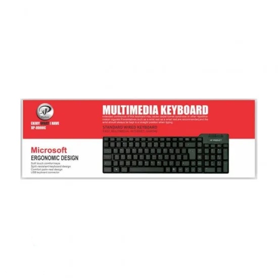 کیبورد ایکس پی XP-8000C یک صفحه کلید باکیفیت از تولیدات شرکت ایکس پی میباشد که از طریق پورت USB به سیستم شما متصل میشود. کیبورد ایکس پی-پروداکت مدل XP-8000 C دارای حروف حک شده فارسی میباشد و شما با داشتن این کیبورد نیاز به لیبل یا برچسب گذاری کلیدهای کیبورد ندارید. این محصول دارای طراحی ارگونومیک میباشد و شما در استفاده طولانی مدت احساس خستگی نمیکنید.