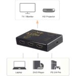 سوئیچ HDMI 4K کنترل دار 3 پورت فوق دارای ریموت کنترل برای سوییچ کردن بین دستگاهها است و میتوانید از طریق اینریموت نیز اقدام به سوییچ کردن بین دستگاهها کنید و دستگاه مورد نظر را انتخاب کنید. سوییچ های HDMI فوق میتوانند کیفیت تصاویر را از رزولوشن ۱۰۸۰P ساپورت کنند، و به راحتی تصاویررا با نهایت کیفیت بدون هیچگونه افت کیفیتی در صدا و تصویر منتقل کنند.